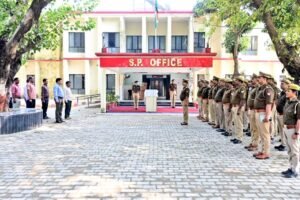 महराजगंज।* वर्ष 1875 में बंकिम चंद्र चट्टोपाध्याय जी द्वारा रचित, देश को एकता के सूत्र में पिरोने वाले राष्ट्रगीत ‘वन्दे मातरम्’ के 150 गौरवशाली वर्ष पूर्ण होने के उपलक्ष्य में ‘वन्दे मातरम्’ का सामूहिक गायन पुलिस कार्यालय में पुलिस अधीक्षक महराजगंज श्री सोमेंद्र मीना एवं अपर पुलिस अधीक्षक श्री सिद्धार्थ की उपस्थिति में किया गया। उपस्थित सभी अधिकारी/कर्मचारियों को राष्ट्रगीत के 150 गौरवशाली वर्ष पूर्ण होने पर हार्दिक बधाई एवं शुभकामनाएं दी गईं।