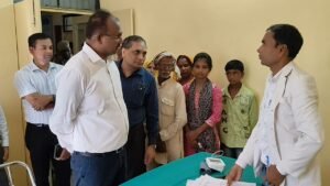 आयोजित आरोग्य मेले का औचक निरीक्षण जिलाधिकारी सन्तोष कुमार शर्मा।